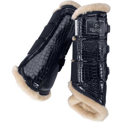 Produkte der ESKADRON Platinum eignen sich sowohl für Dressur- als auch für Springreiter. Glitzer und Samt sorgen für einen strahlend-festlichen Auftritt. Seidig schimmernde Oberflächen perfektionieren den Trend zum Stimmungsvollen. Glanz-Effekte kommen bei der Platinum Kollektion gerne zum Einsatz. Bei den unterschiedlichen Kollektionen werden meist dunkle Grundfarben verwendet. Schöne Kontraste und ansprechende Gegensätze sind fein verarbeitet und lenken die Aufmerksamkeit auf die ausdrucksstarken Produkte.