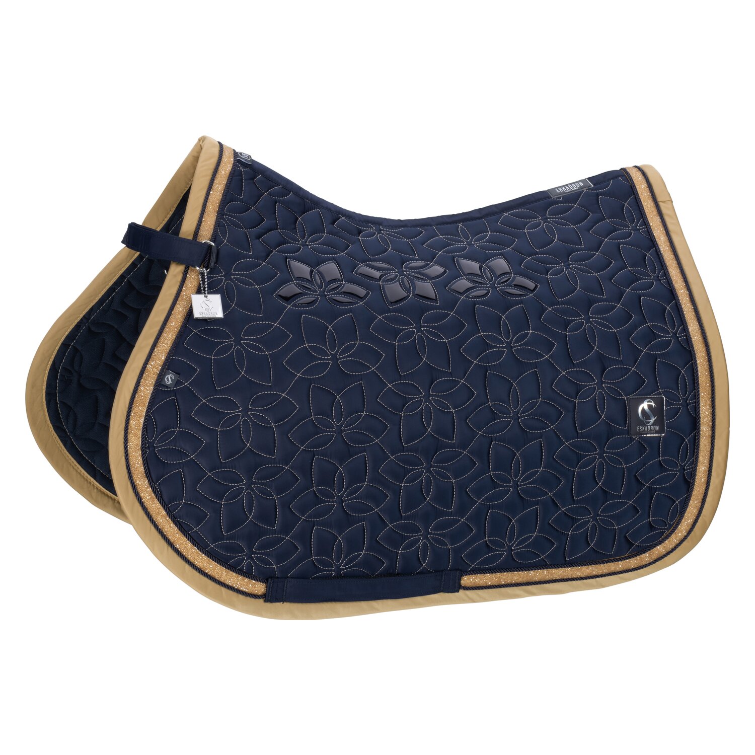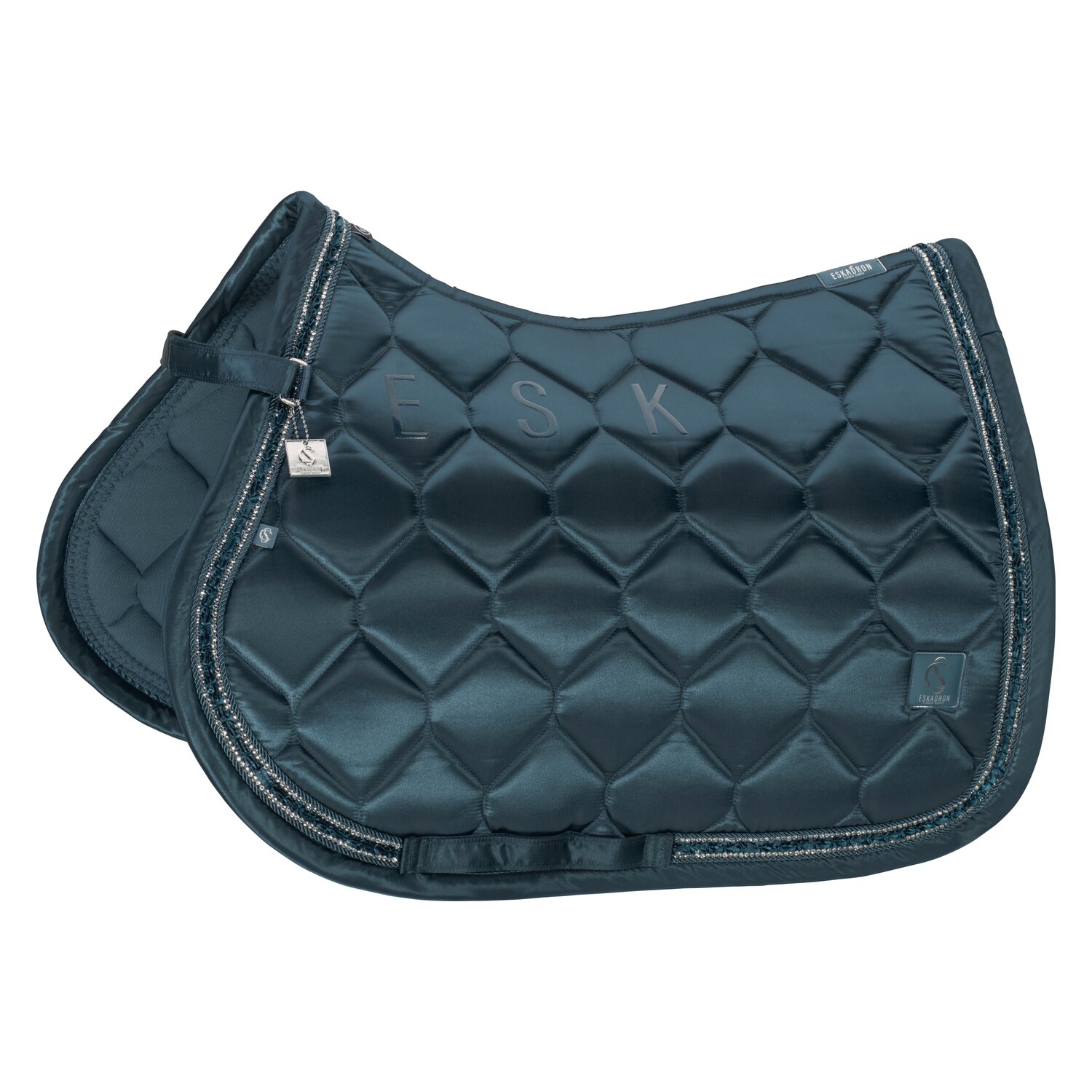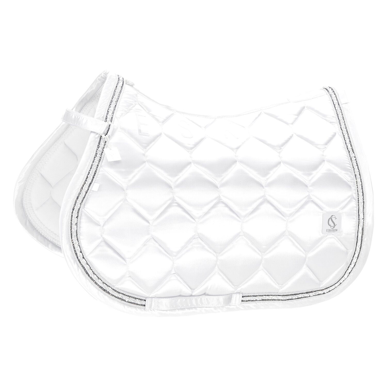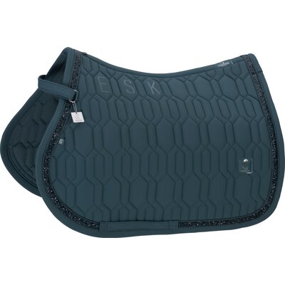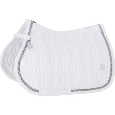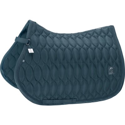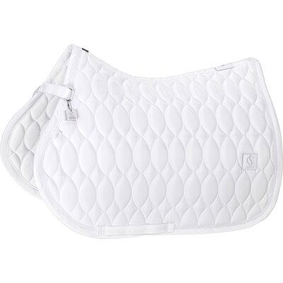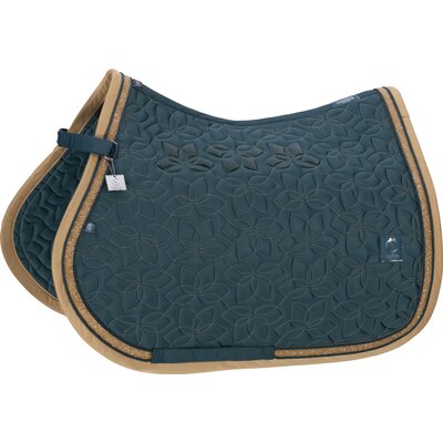 Springreiten:Die Springschabracke zeichnet sich durch einen kompakten und geschwungenen Schnitt aus. Die Schabracken sind für die kürzeren, vorgezogenen Sattelblätter von Springsätteln ausgelegt. Zusätzliche Schlaufen sorgen für einen sicheren Halt auch bei intensiven Bewegungen.
