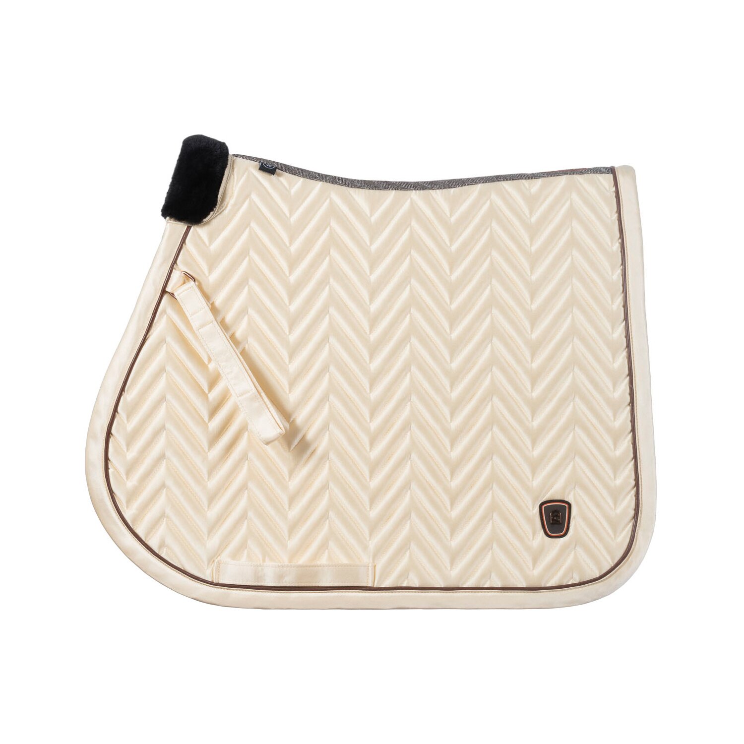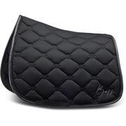 Springreiten:Die Springschabracke zeichnet sich durch einen kompakten und geschwungenen Schnitt aus. Die Schabracken sind für die kürzeren, vorgezogenen Sattelblätter von Springsätteln ausgelegt. Zusätzliche Schlaufen sorgen für einen sicheren Halt auch bei intensiven Bewegungen.