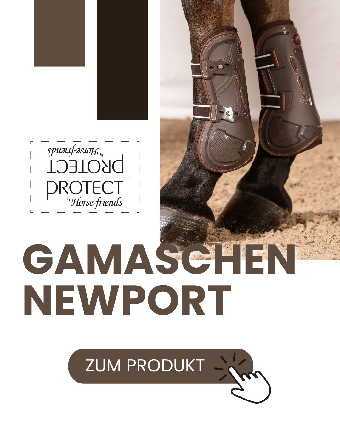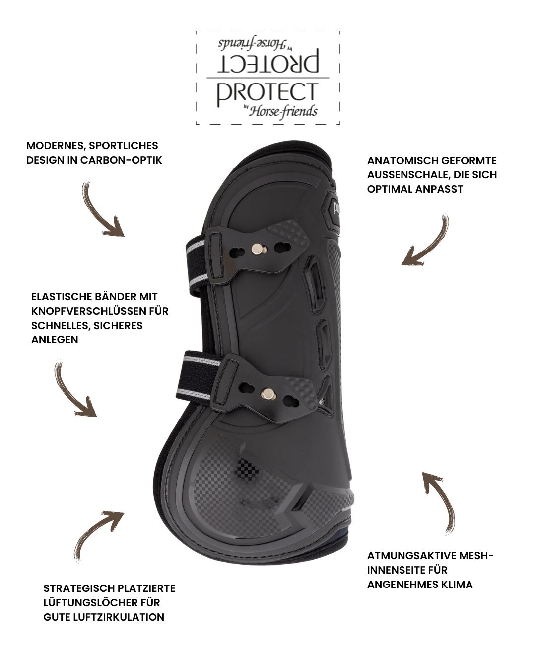 Die PROTECT by Horse-friends Gamaschen Newport bieten zuverlässigen Schutz für die Vorderbeine bei Training und Turnier. Die anatomisch geformte Außenschale schützt vor Stößen, während Lüftungslöcher und eine atmungsaktive Mesh-Innenseite für optimale Belüftung sorgen. Elastische Bänder mit Knopfverschluss garantieren einen sicheren, rutschfesten Sitz bei voller Bewegungsfreiheit – funktional, pflegeleicht und modern im Design.