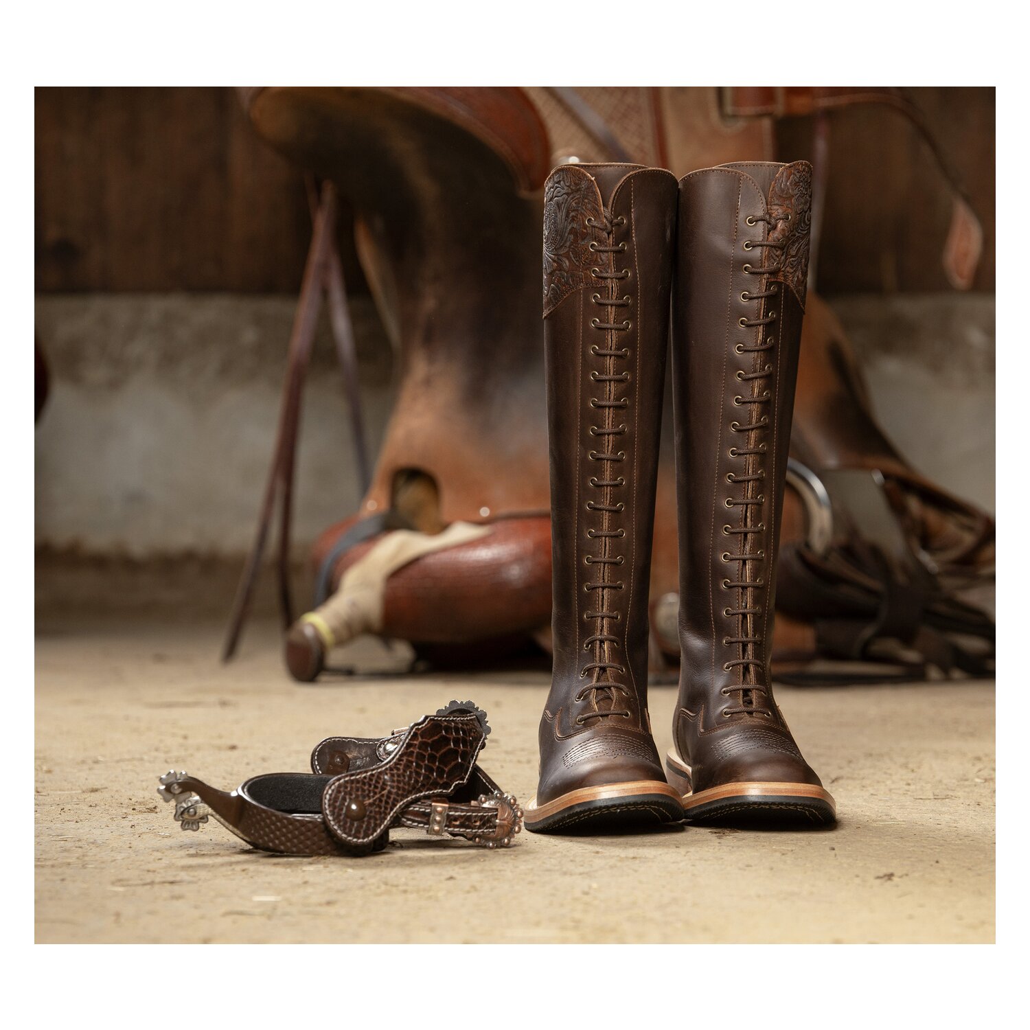 Westernsporen mit dem klassischen, meist acht-zackigen Rad und schönen Verzierungen werden von Western Sporenriemen an den Stiefeln gehalten. Die Western Sporenriemen gibt es ganz schlicht oder mit Punzierung, Conchas oder der in der Westernwelt so typischen mehr-Farben-Optik. Gemeinsam haben die Sporenriemen allerdings alle eine erstklassige Lederqualität und dadurch extrem hohe Stabilität.